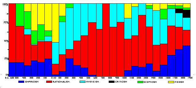 Fluctuations of the Influence of Systems of Truth (by Centuries): This is an example of Sorokin's study in the sociology of philosophy.